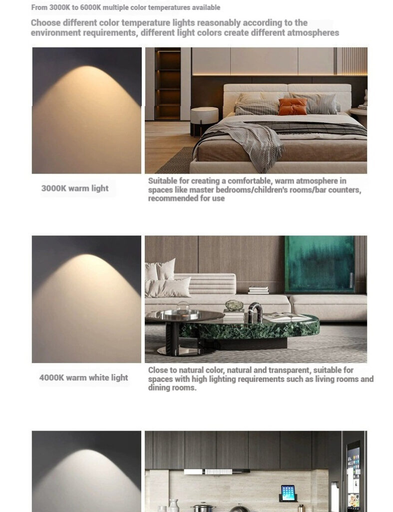· Tunable White: Available in a range of color temperatures from warm white, netrual white and pure white, catering to various ambiances from cozy homes to productive workspaces.