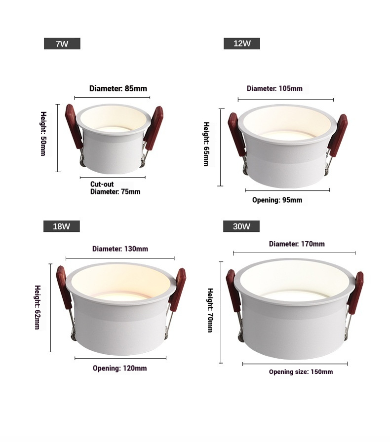 Round recess7Wφ85mm75mmAluminum bodyWhite165-265V803000K/4000K/6000K/three color color box +carton box