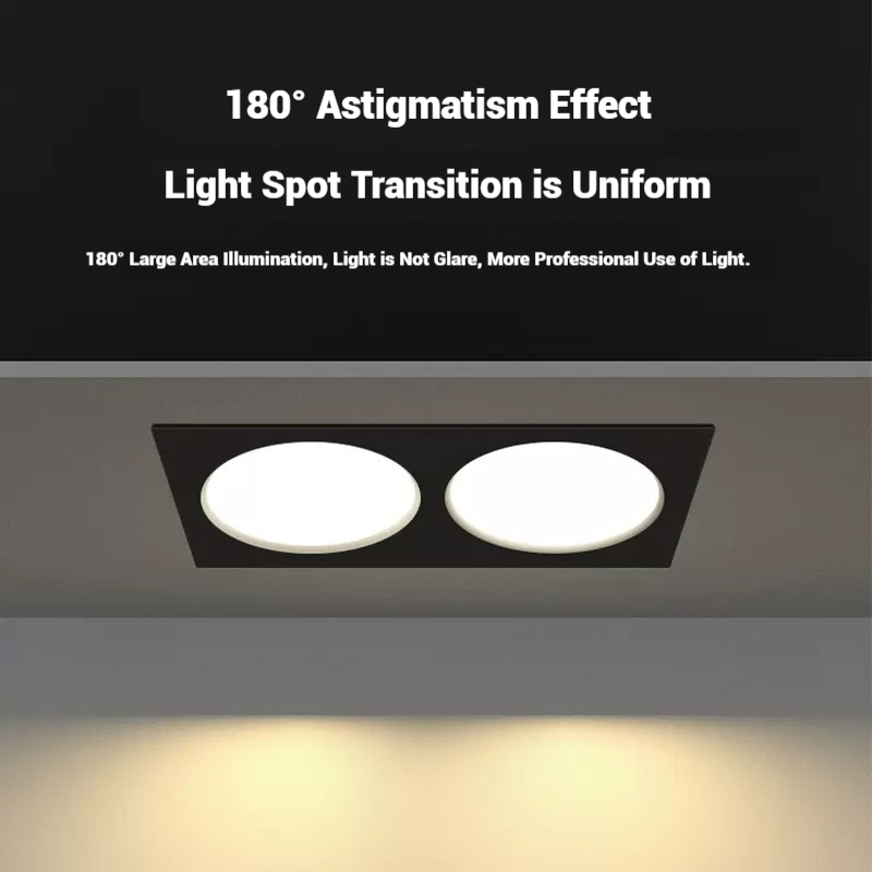 | Square Double head recess | 2*7W | 180*95mm | 160*80mm | Aluminum body | White/Black | 165-265V | 80 | 3000K/4000K/6000K/three color | color box +carton box |
