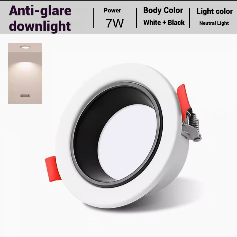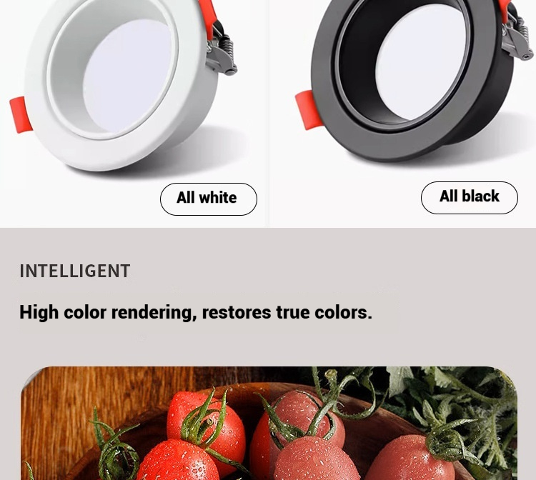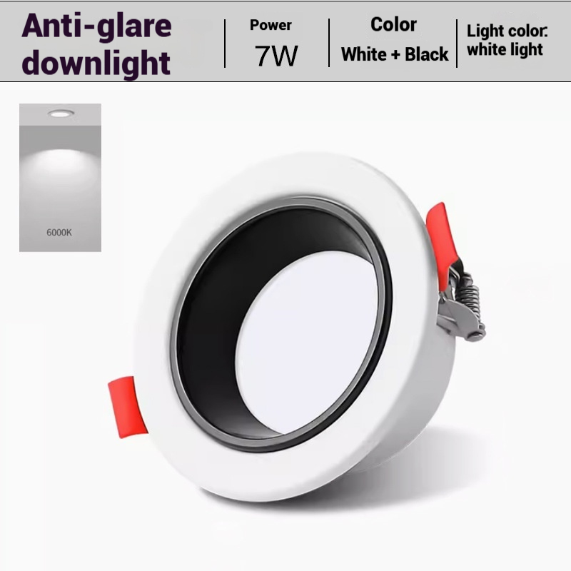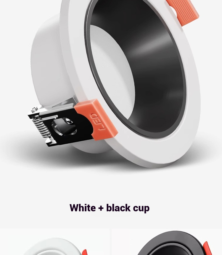 Round recess7Wφ90mm75mmAluminum bodyPure white/All black/White+black/165-265V803000K/4000K/6000K/three color color box +carton box