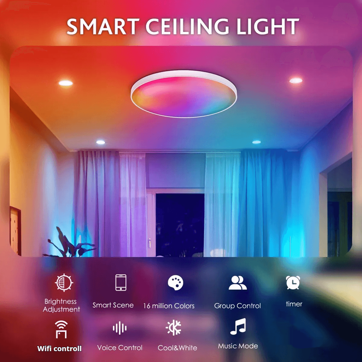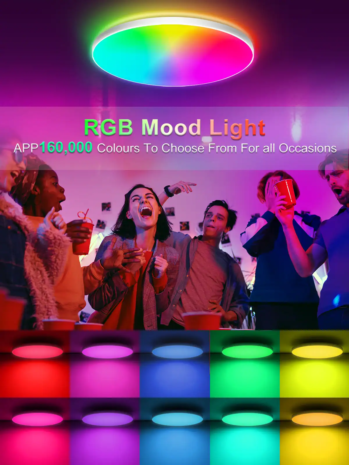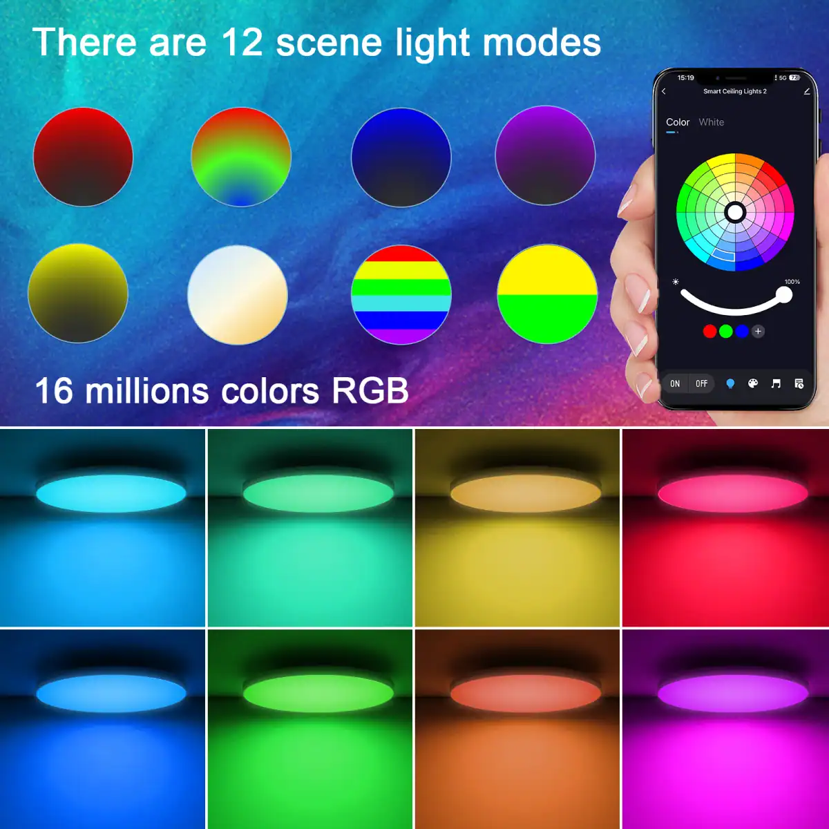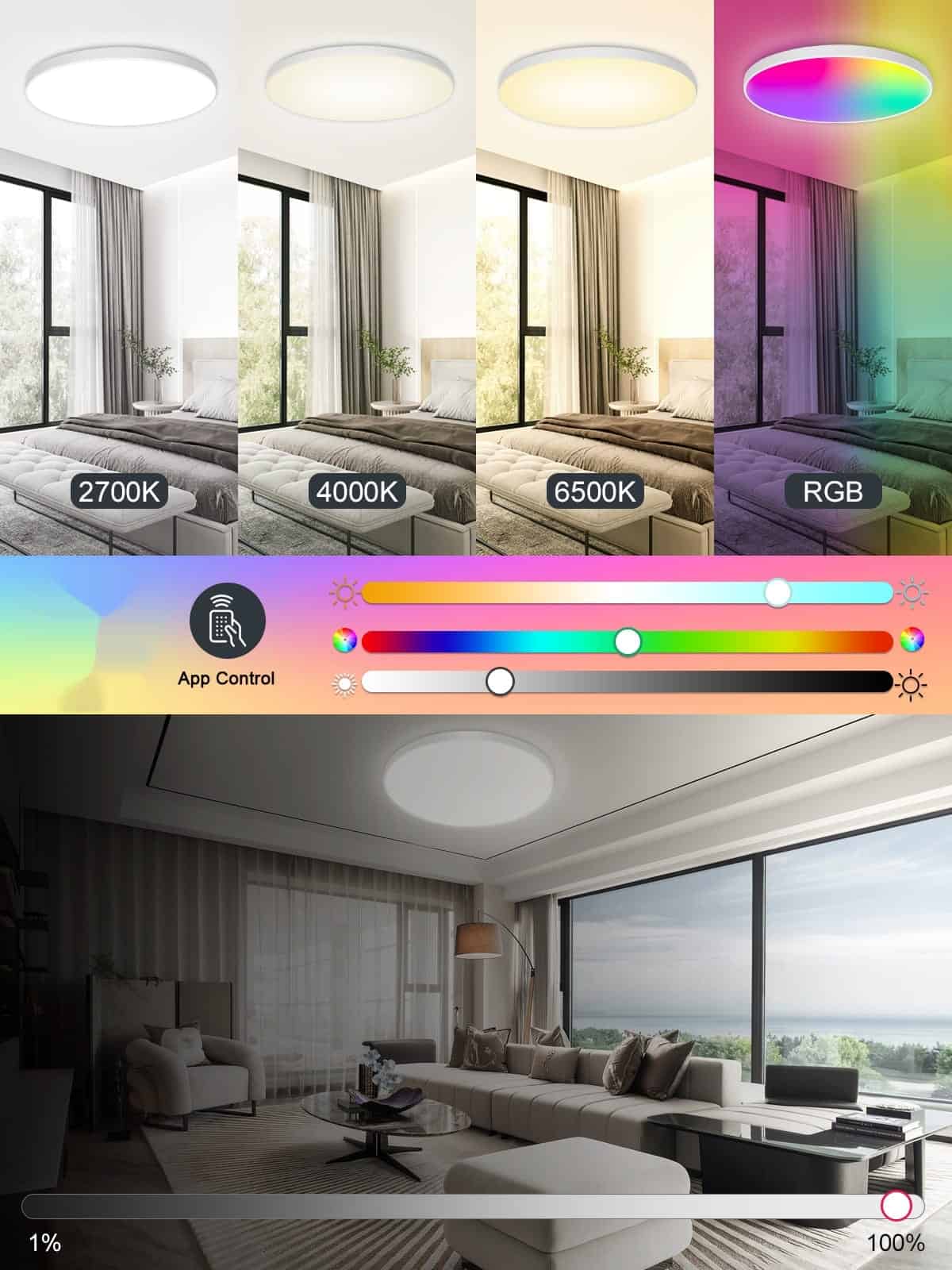 This smart LED flush mount ceiling light combines modern lighting performance with intelligent functionality: