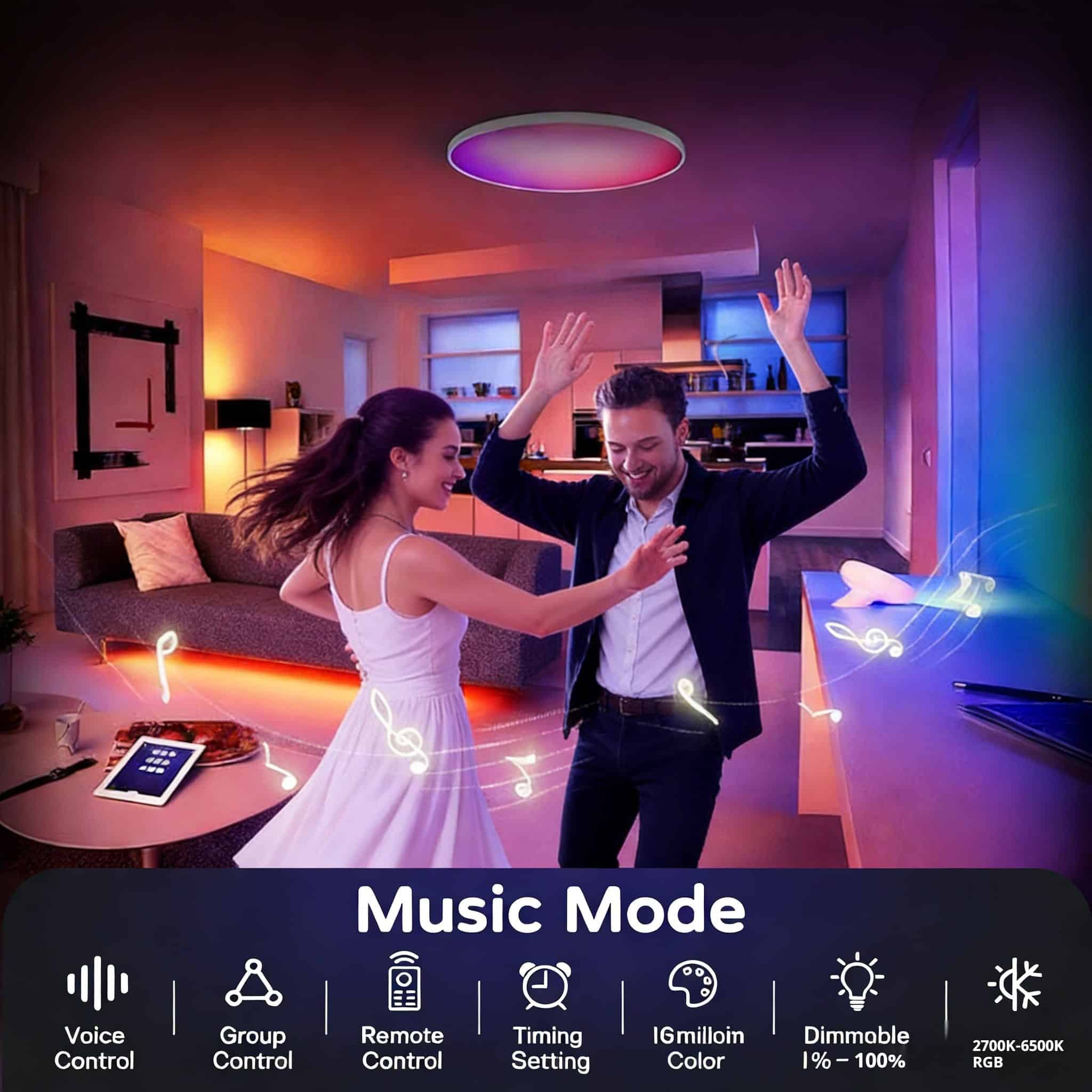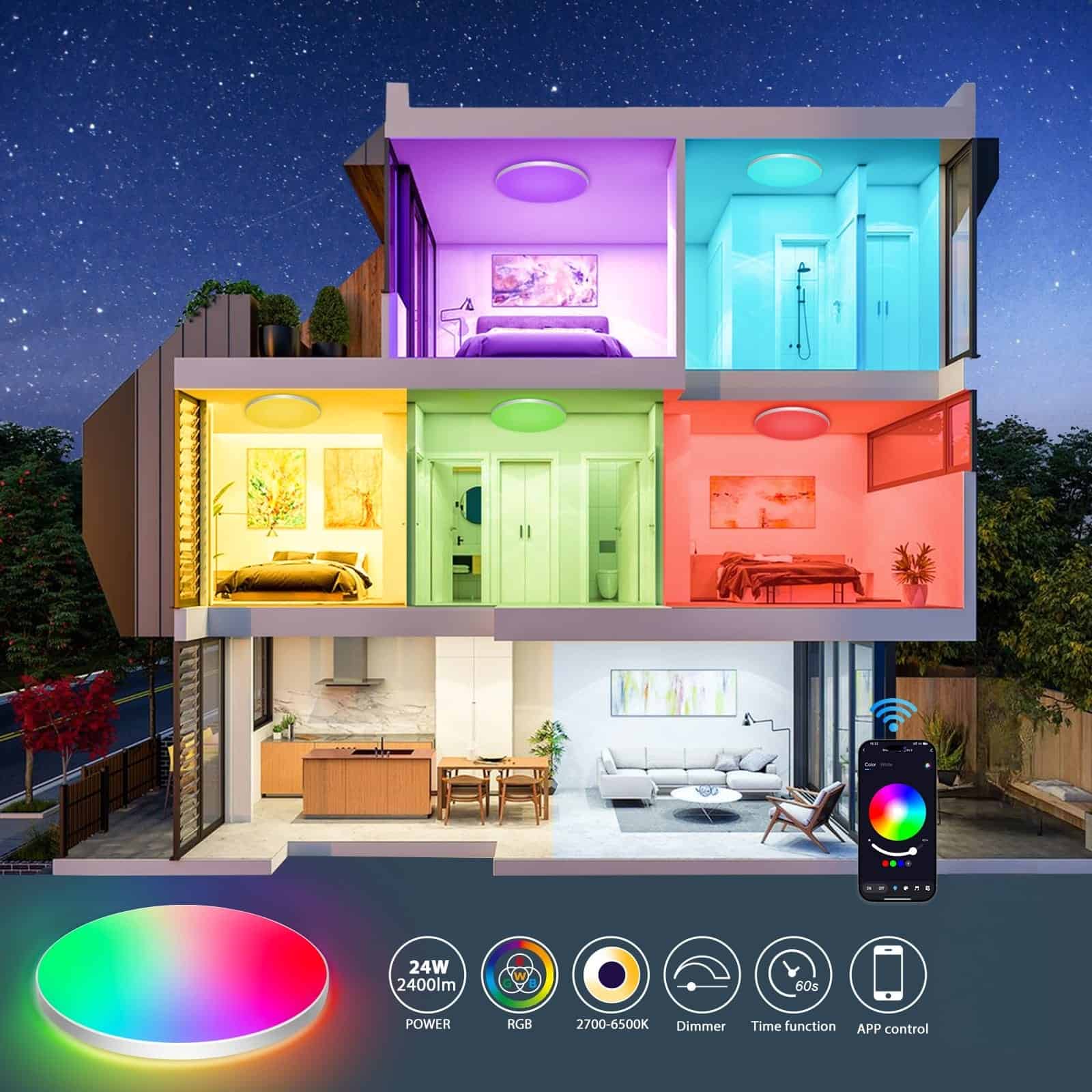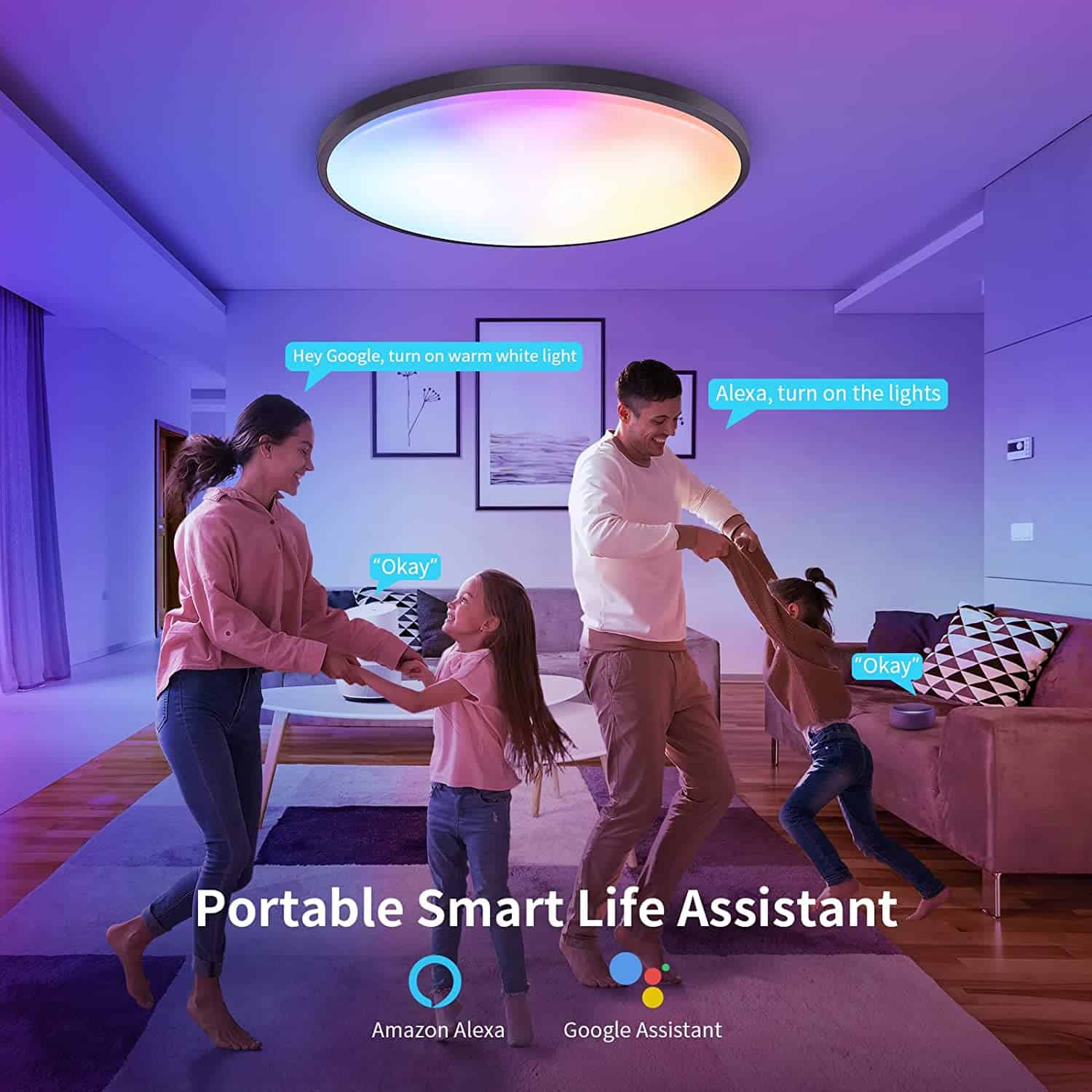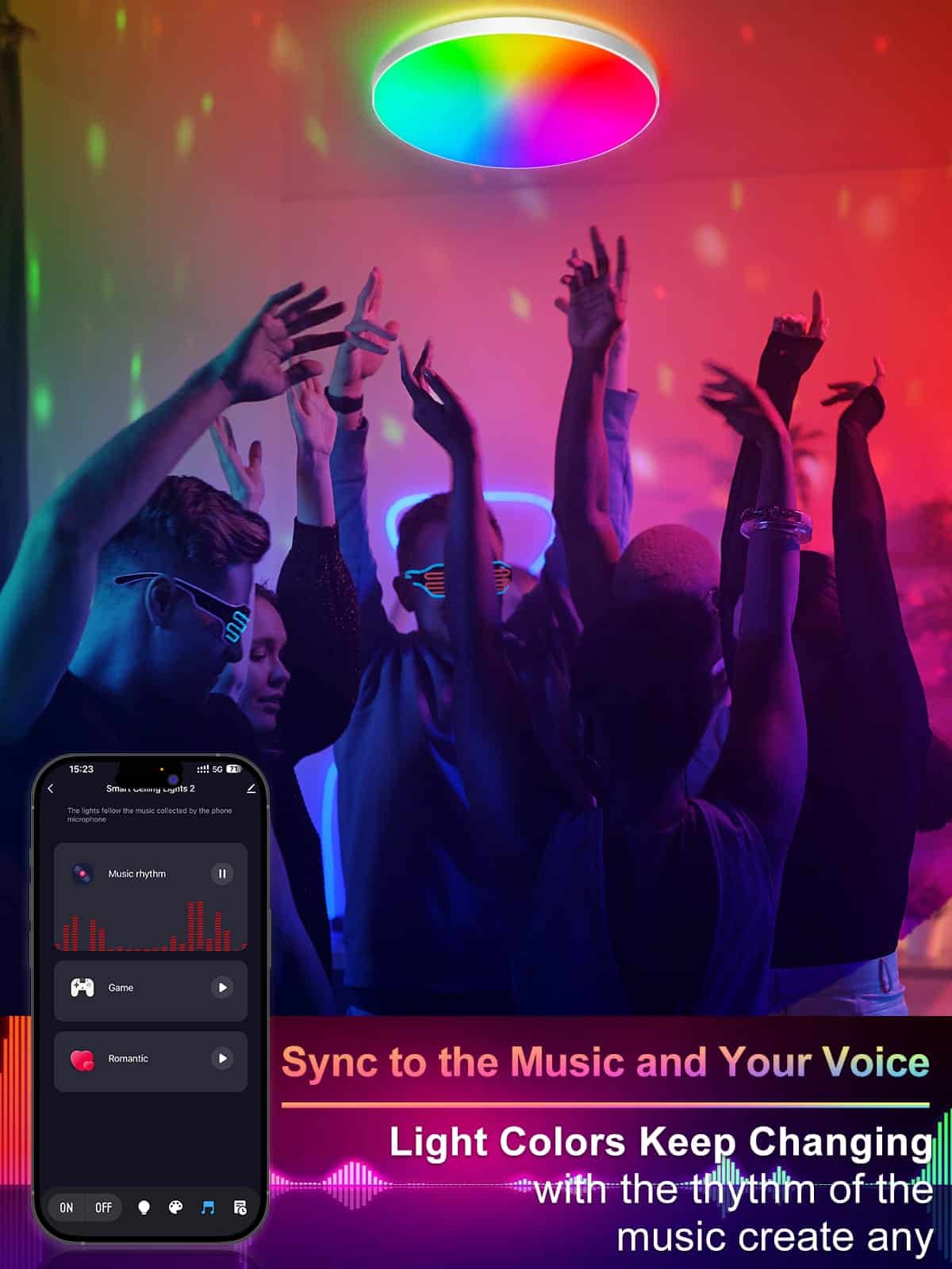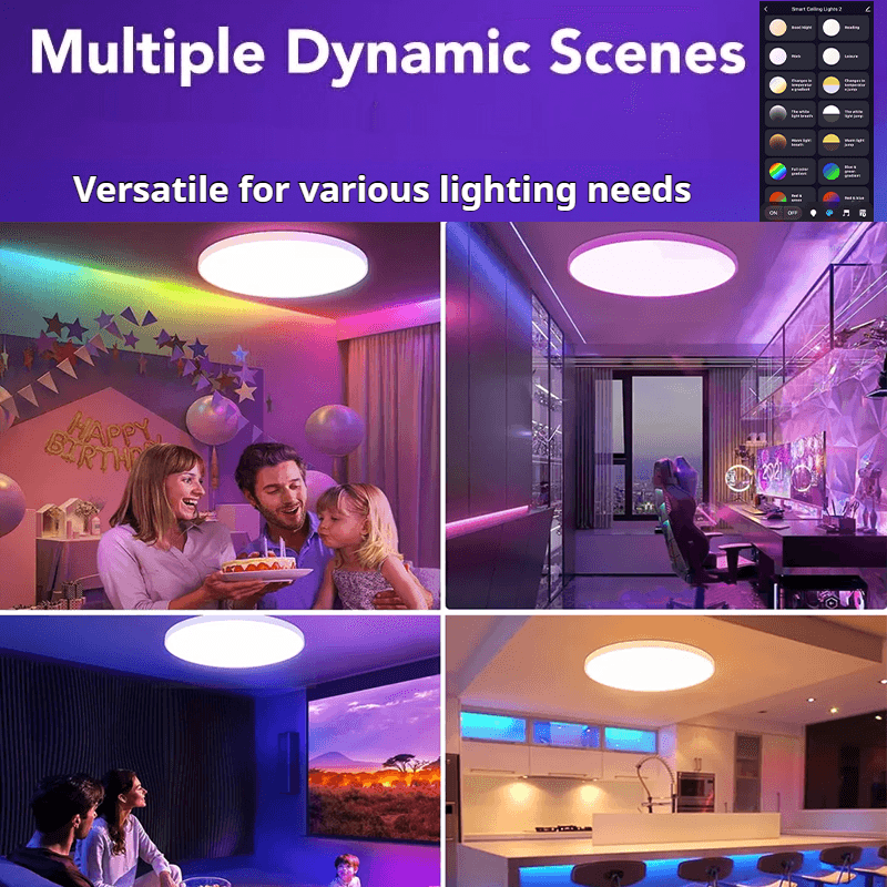 This smart LED flush mount ceiling light combines modern lighting performance with intelligent functionality: