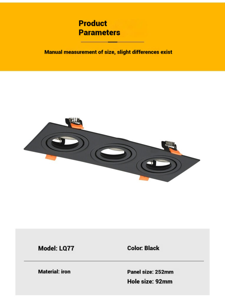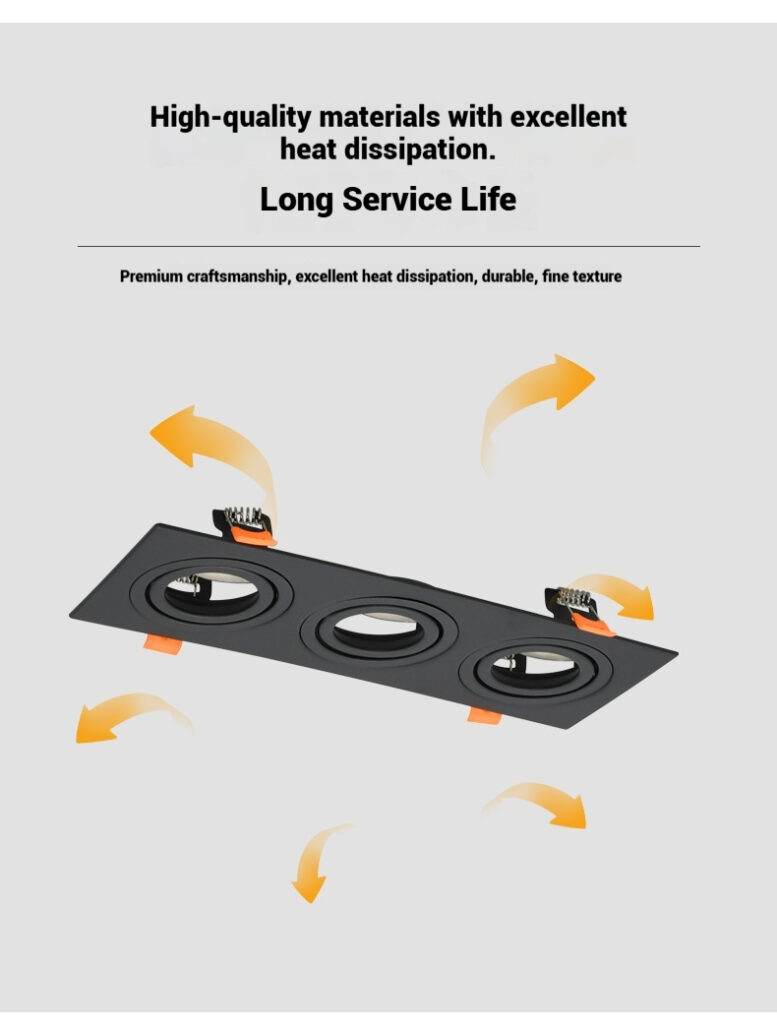 This three heads led recess ceiling housing is designed for ultimate versatility and durability. Compatible with both MR16  and GU10 bulb types, it allows you to customize lighting for any atmosphere or functional need. Its sleek, low-profile design makes it an ideal choice for creating modern and focused lighting in residential and commercial settings.